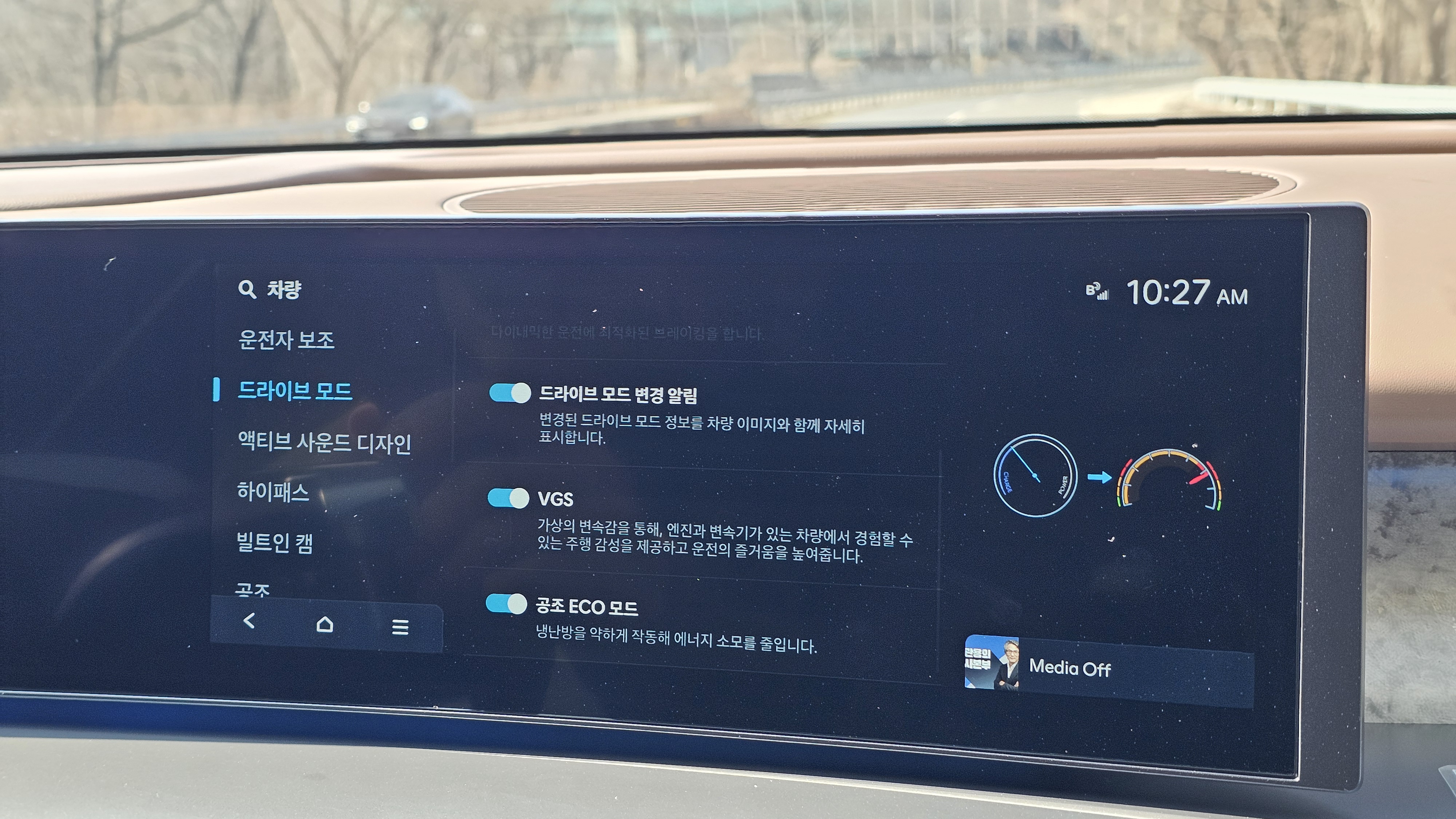 이중 접합 유리가 적용되어 있어 외부 소음이 적게 들어왔는데, 아무래도 전기차 특성상 작은 소리도 예민하게 느껴지는 부분들을 잘 반영을 한 것 같습니다.